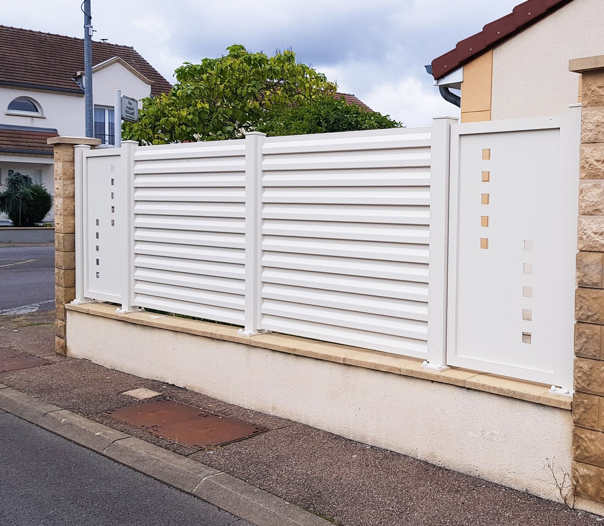 Reconnu comme expert en clôture aluminium, SB concept conçoit et installe des clôtures en aluminium thermolaqué, finition blanc Fine Structure. Cette teinte texturée assure une excellente tenue aux UV et à la corrosion.